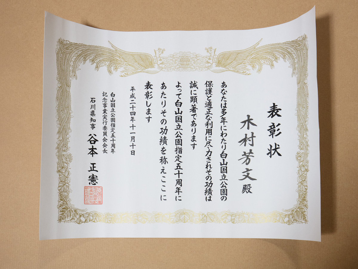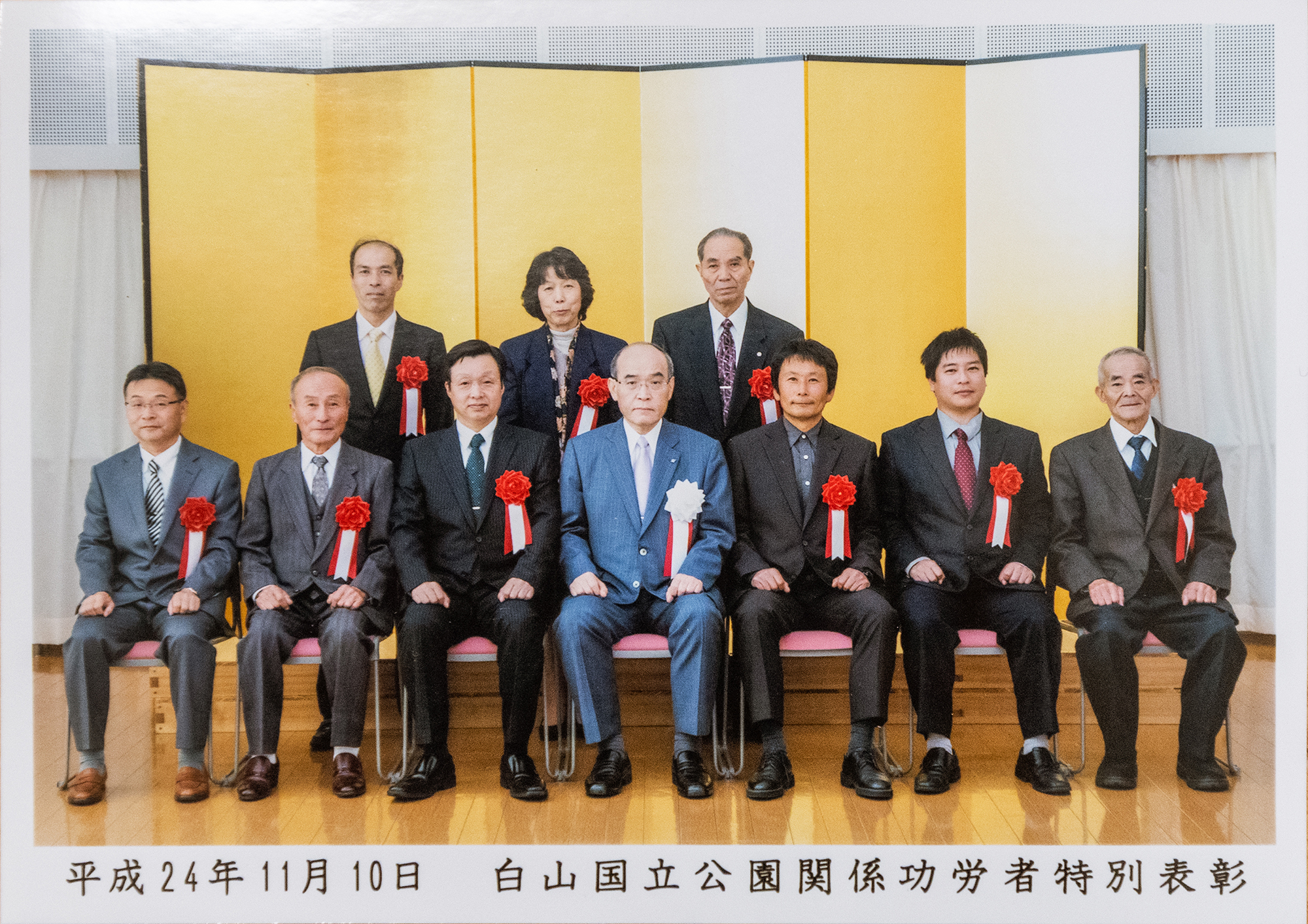 白山国立公園関係功労者特別表彰 2012年12月12日 表彰状 集合写真